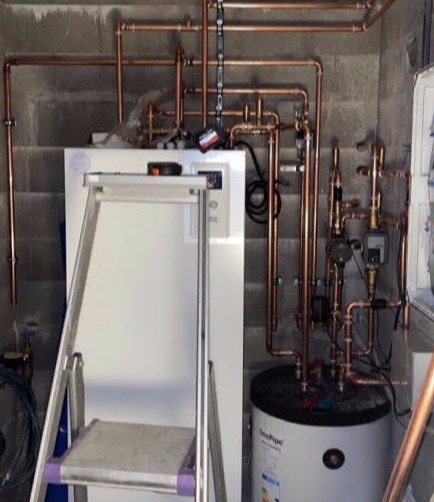 Tässä kuvassa olemme vaihtaneet öljylämmityksen maalämpöön. Poistamme vanhan öljysäiliön ja teemme tarvittavat muutokset uudelle lämmitysmuodolle.